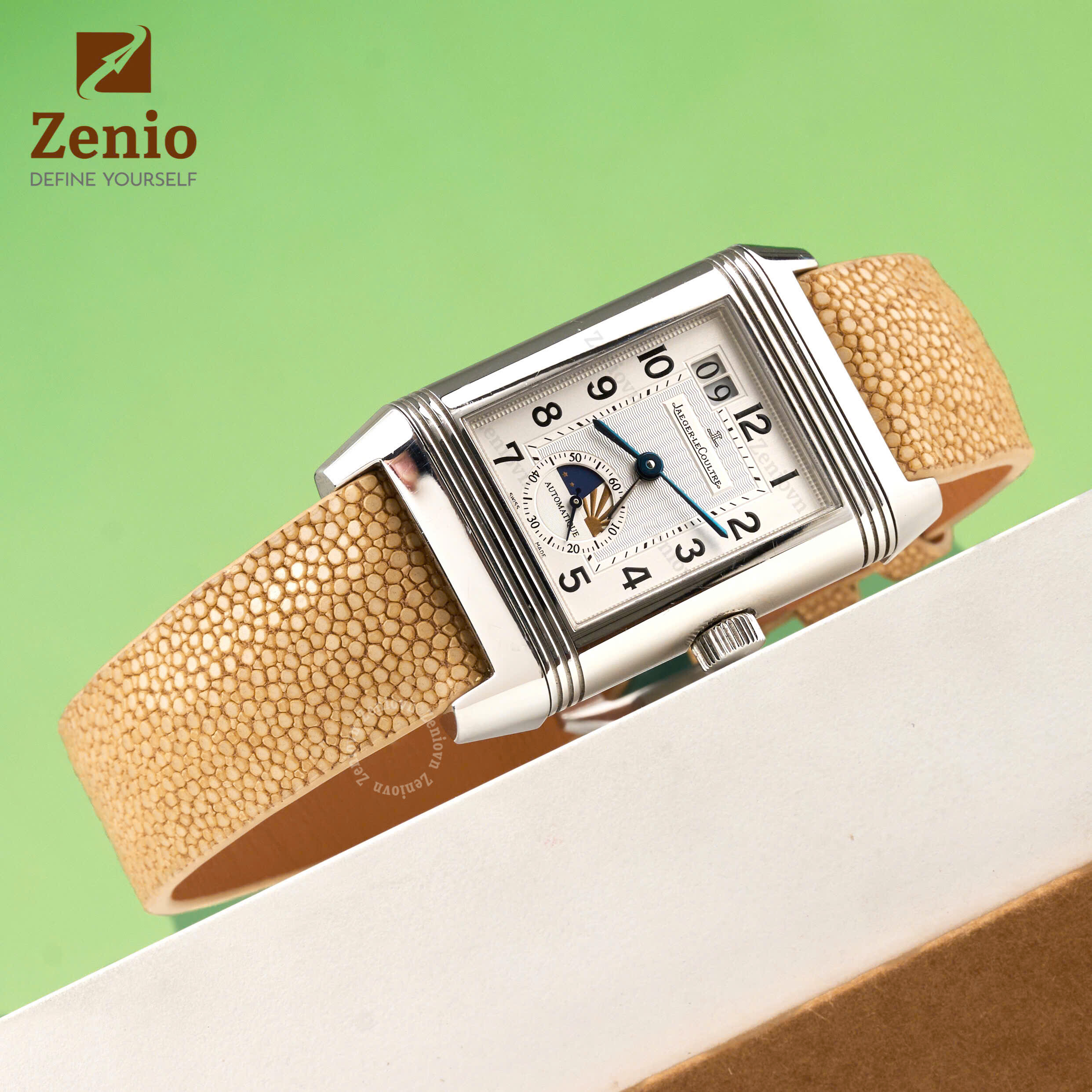 Dây đồng hồ hoạ tiết Sailcloth màu trắng, chỉ xanh – phong cách thể thao