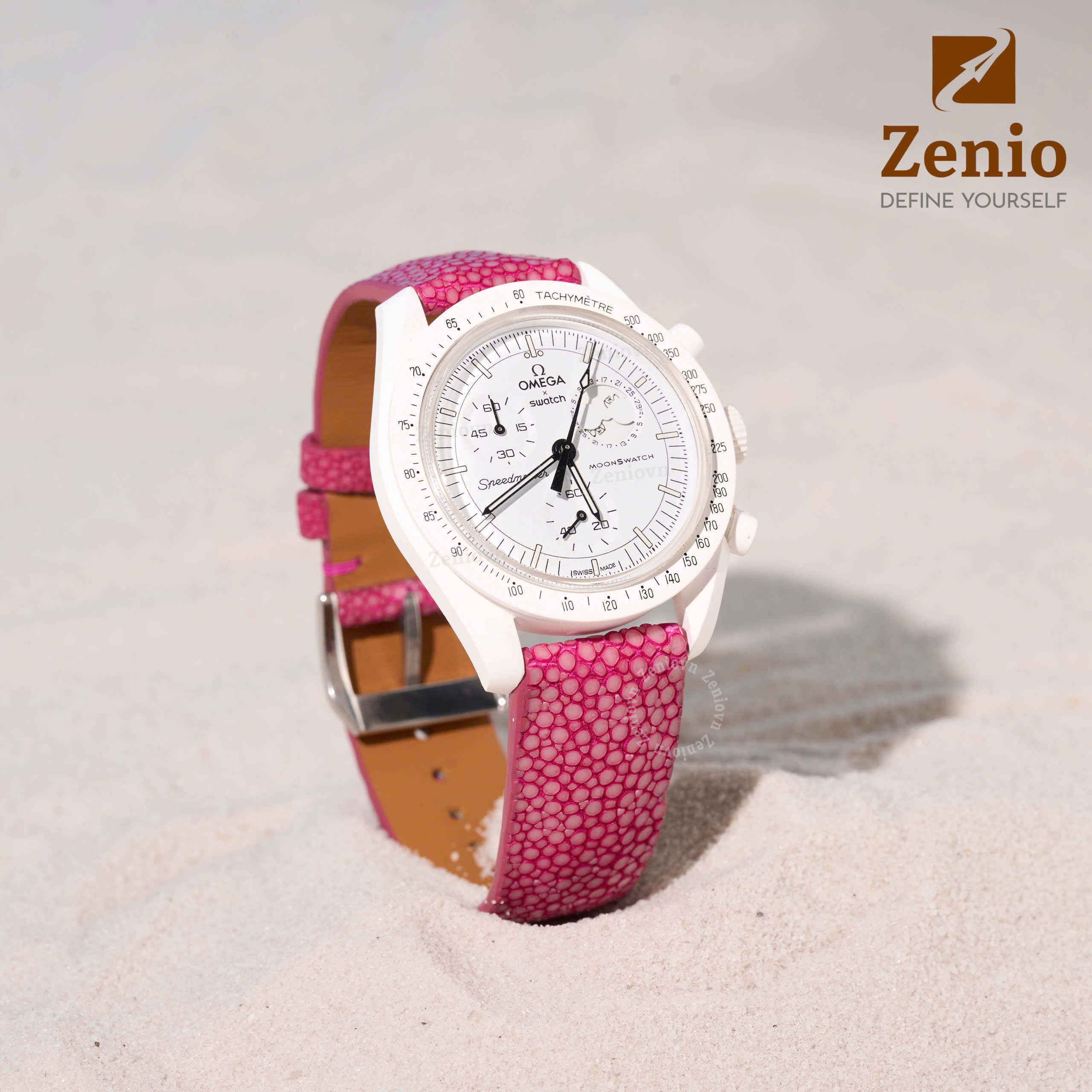 Dây đồng hồ hoạ tiết Sailcloth màu trắng, chỉ đỏ – phong cách thể thao