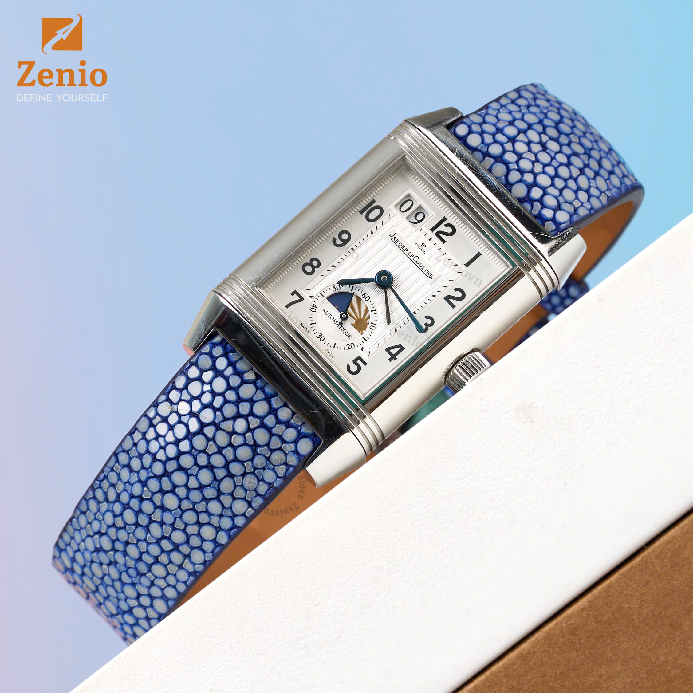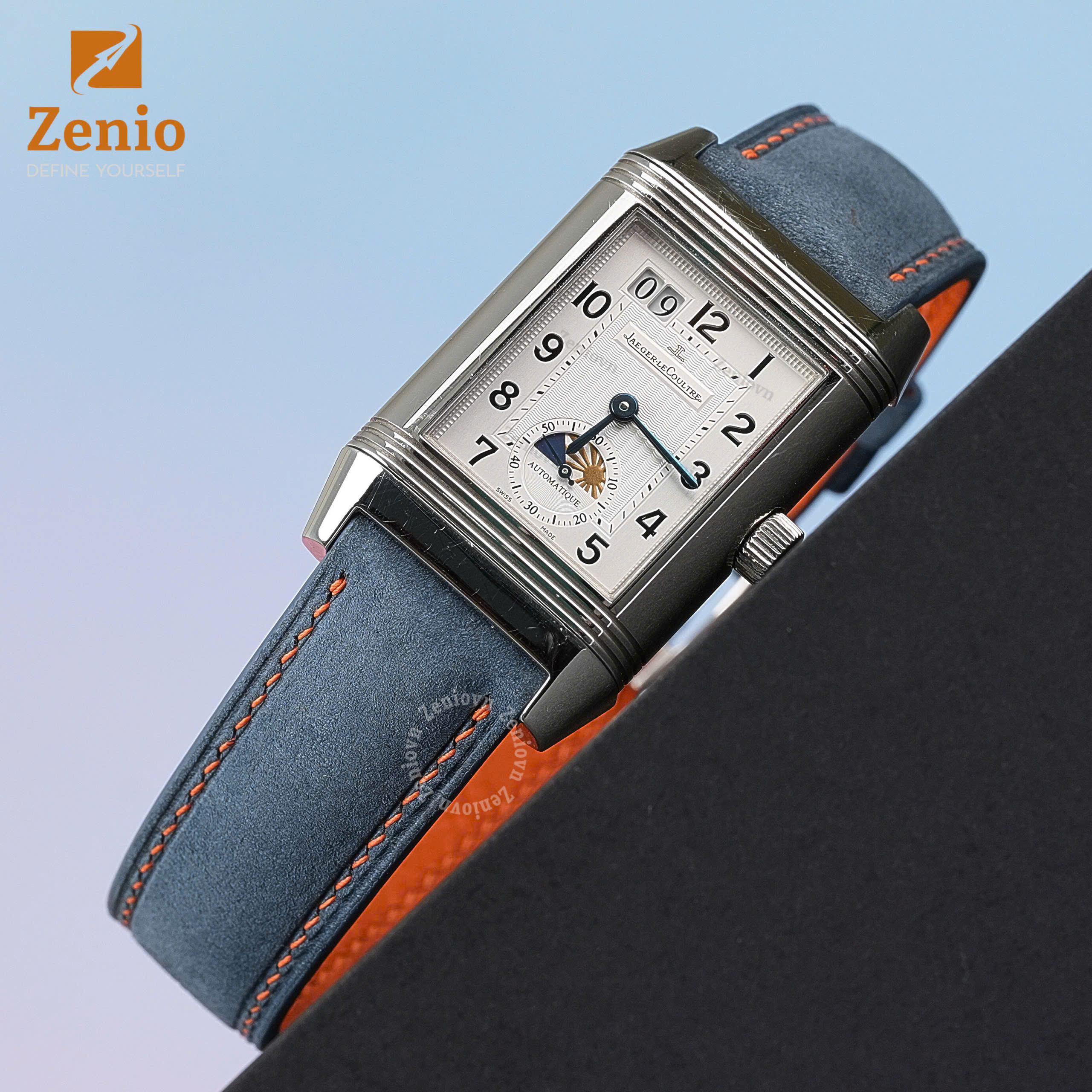 Dây đồng hồ hoạ tiết Sailcloth màu xanh, chỉ trắng – phong cách thể thao
