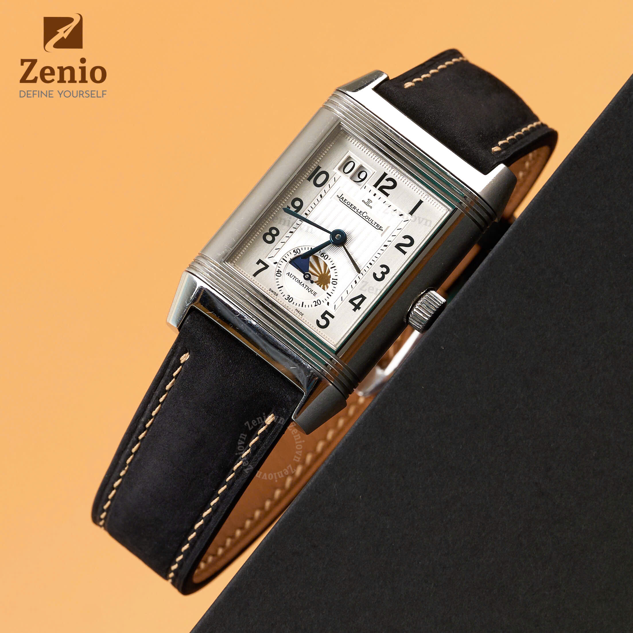 Dây đồng hồ hoạ tiết Sailcloth màu đen, chỉ vàng – phong cách thể thao