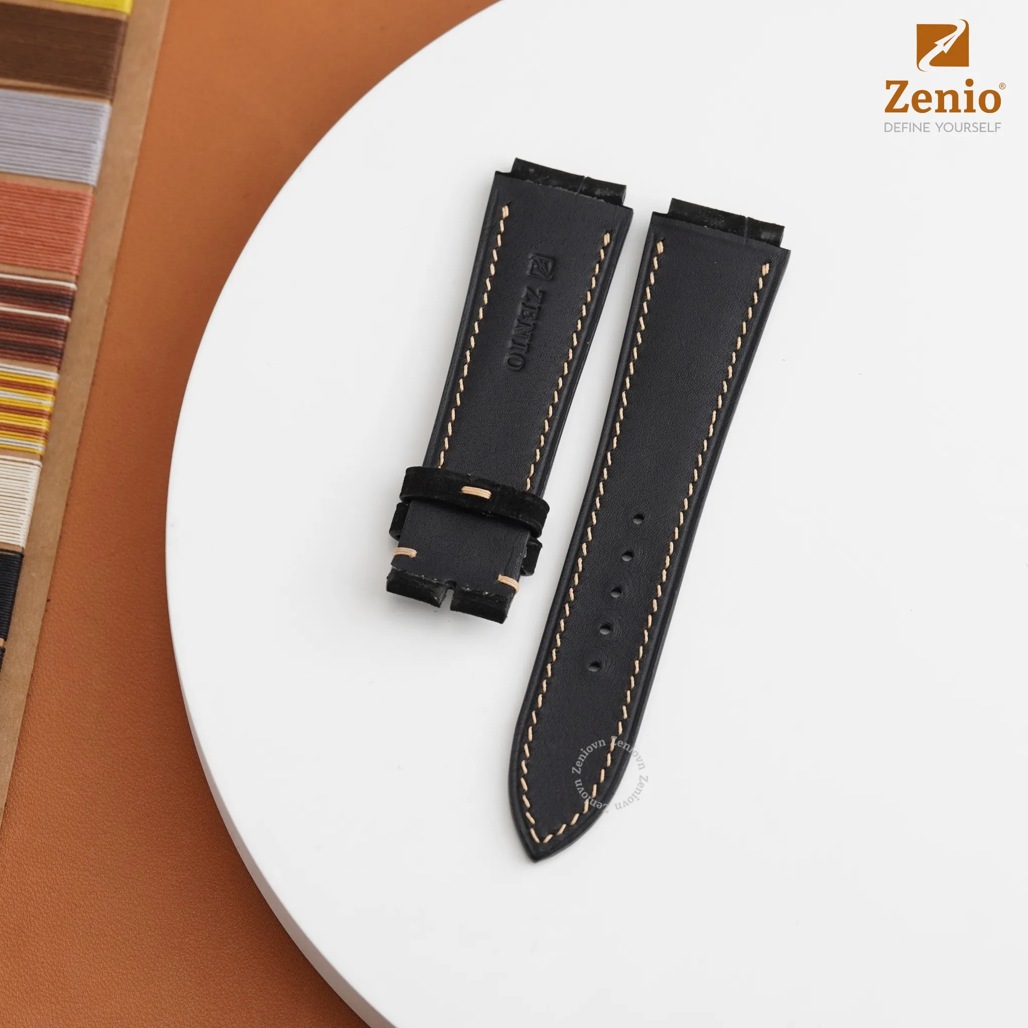 Dây đồng hồ Breitling – Dây Da Cá Sấu Đen Phối Chỉ Trắng