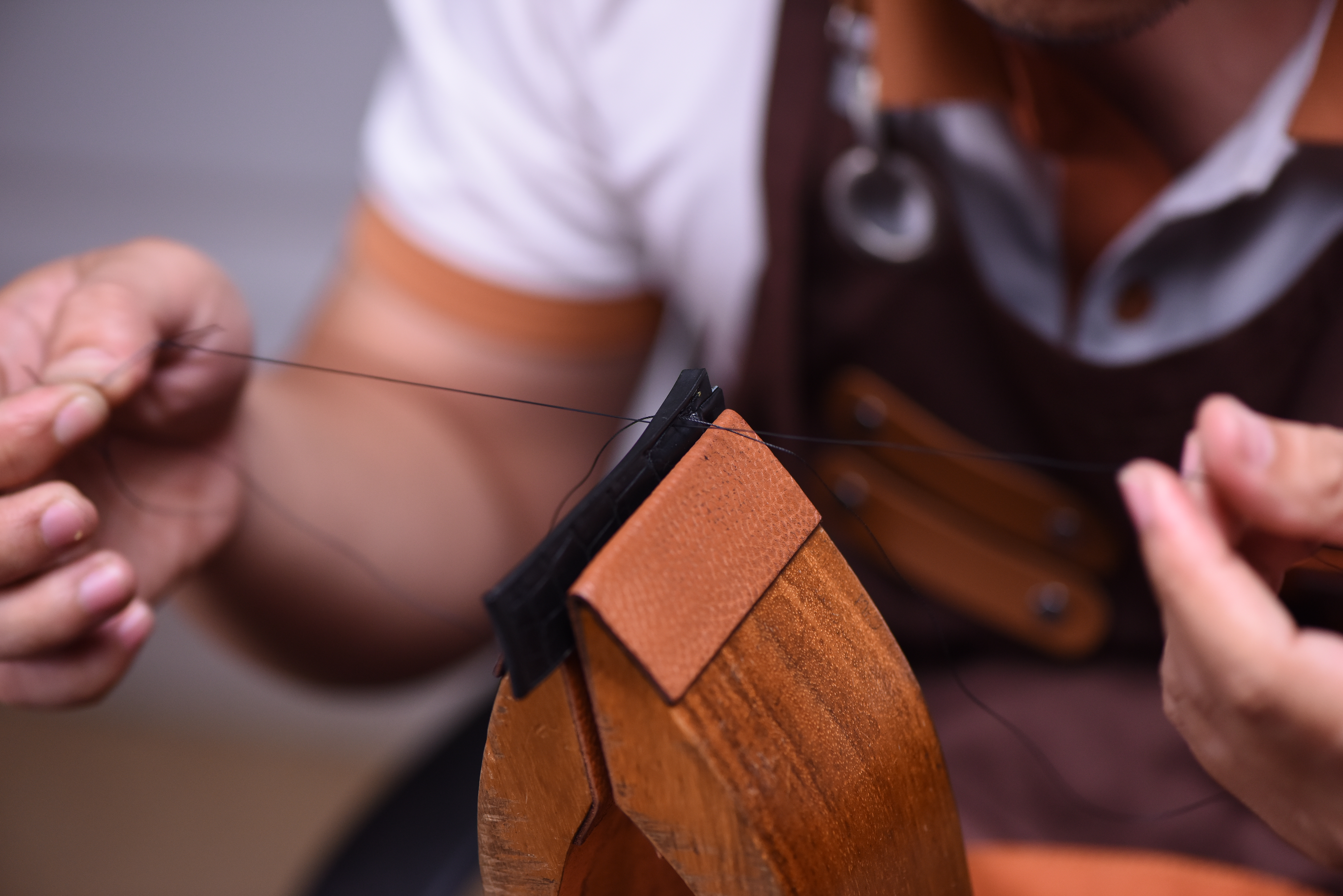 May tay cho phép người thợ điều chỉnh theo phản ứng của da. Đây là lý do dây da đồng hồ Zenio được may chậm, nhưng kiểm soát tốt hơn về form và độ bền.