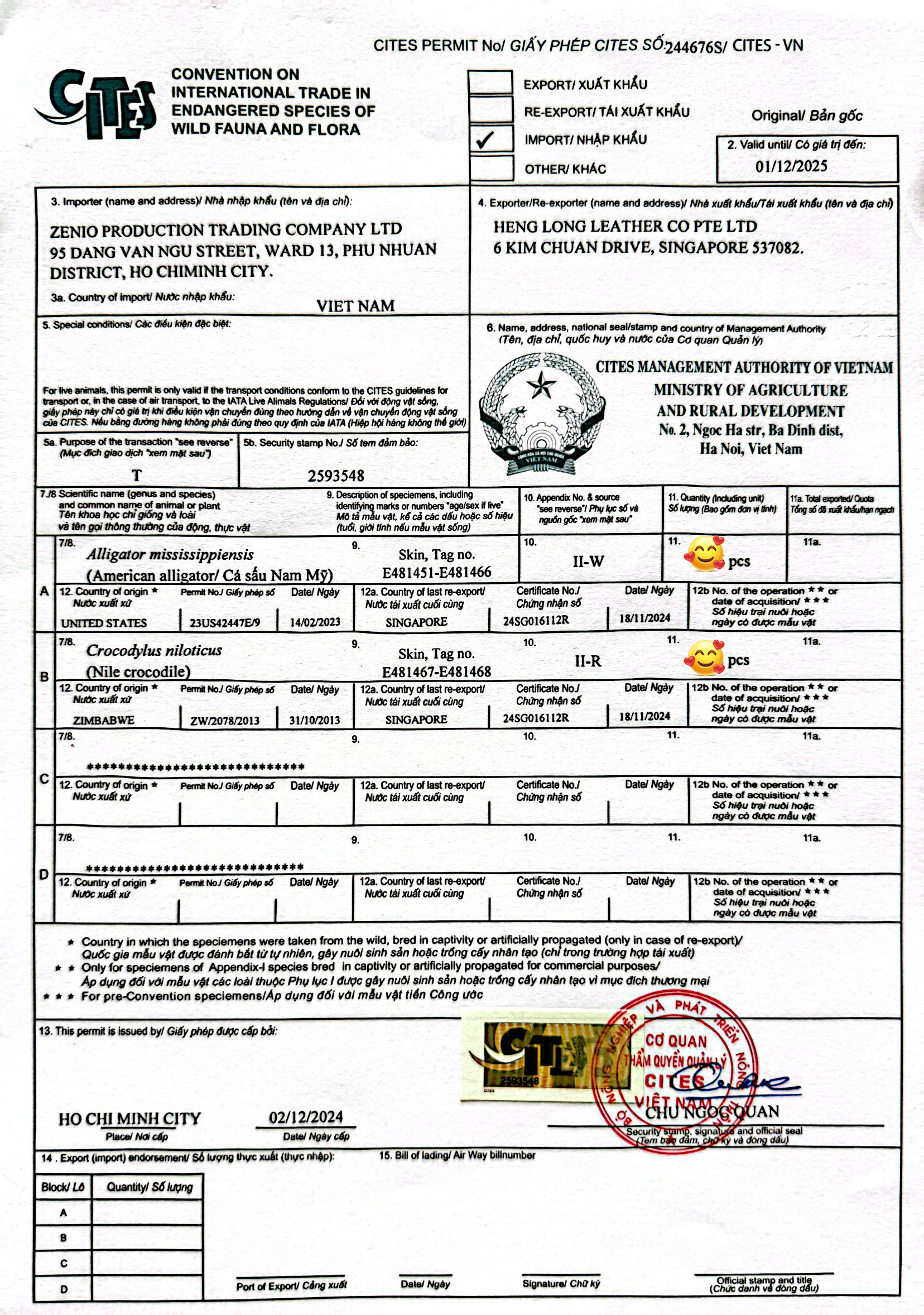 Chứng chỉ CITES tại Zenio