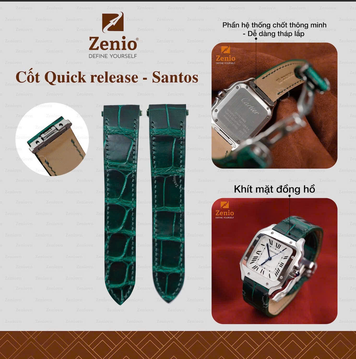 Khi chọn dây cho Cartier Santos, việc xác định đúng size dây, loại khóa và hệ thống cốt Quick Release là bước đầu tiên để đảm bảo dây đeo lắp vừa vặn và giữ được form đẹp trên cổ tay.