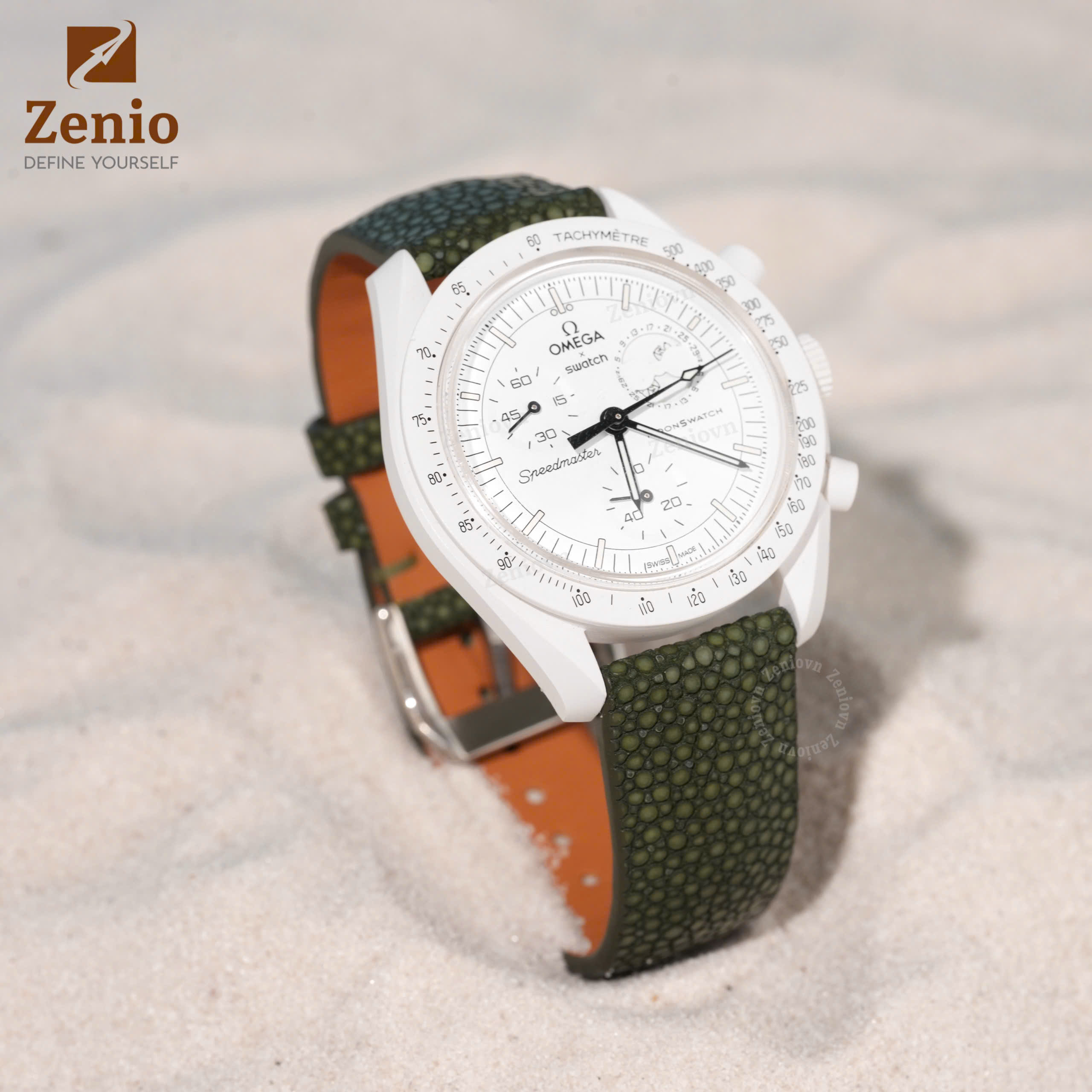 Dây Da Đồng Hồ Cá Đuối Xanh Olive
