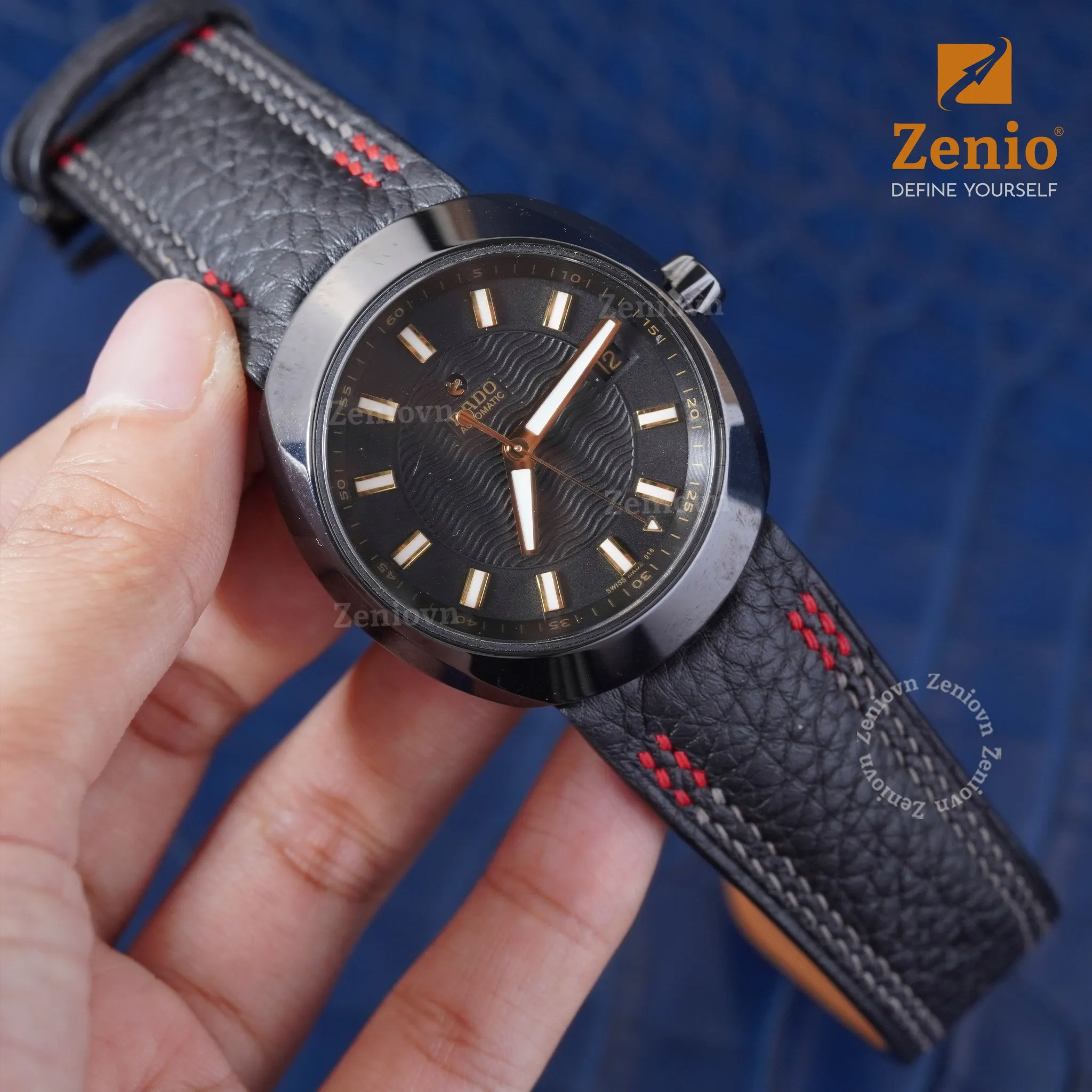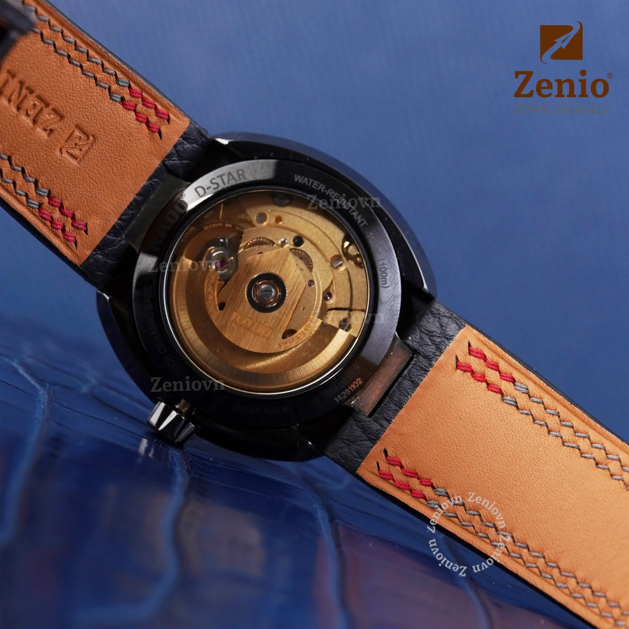 Dây Da Đồng Hồ Rado – Dây Da Alran Màu Nâu Mix Chỉ Đỏ