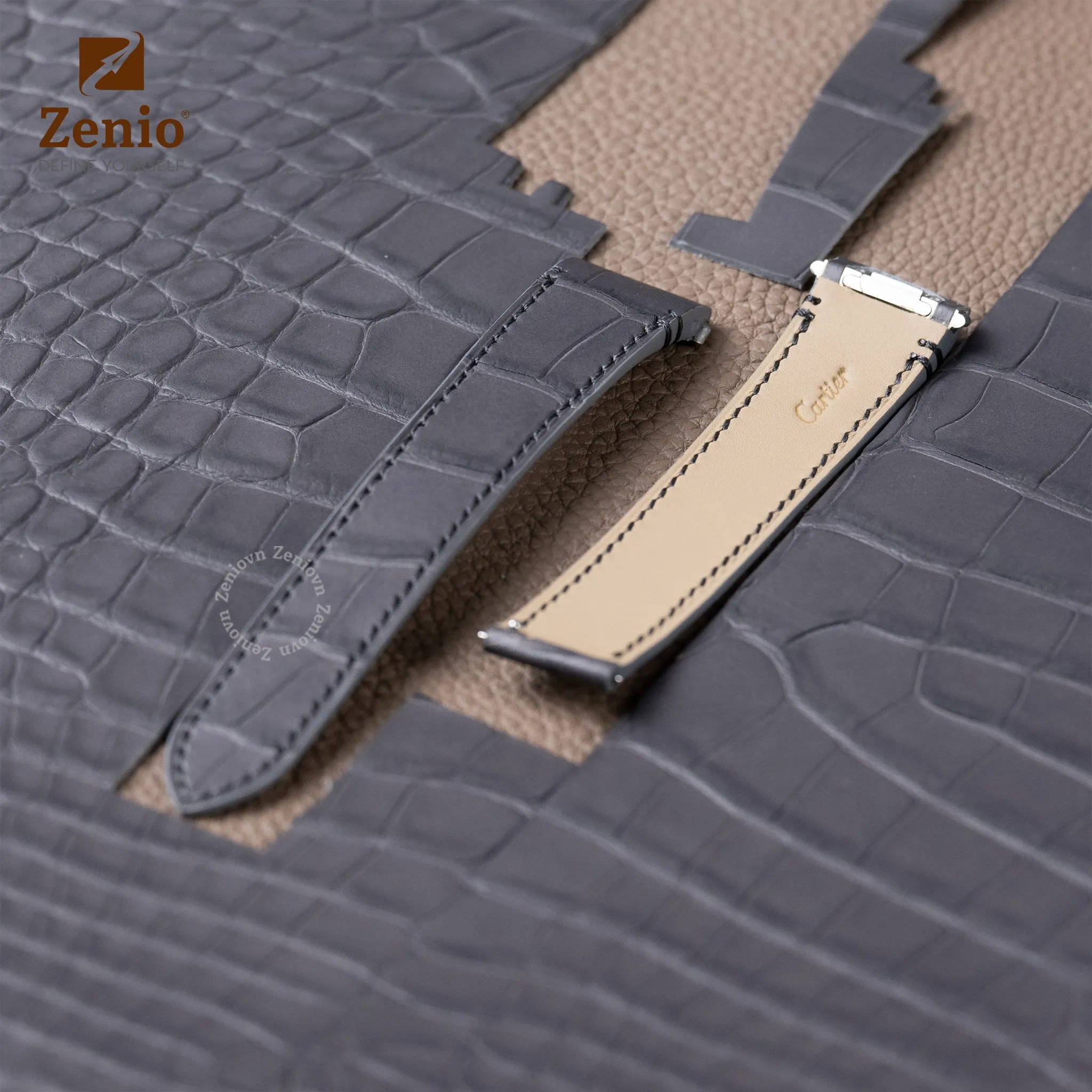 Dây đồng hồ Cartier Santos New Model – Dây Da Cá Sấu Màu Xám
