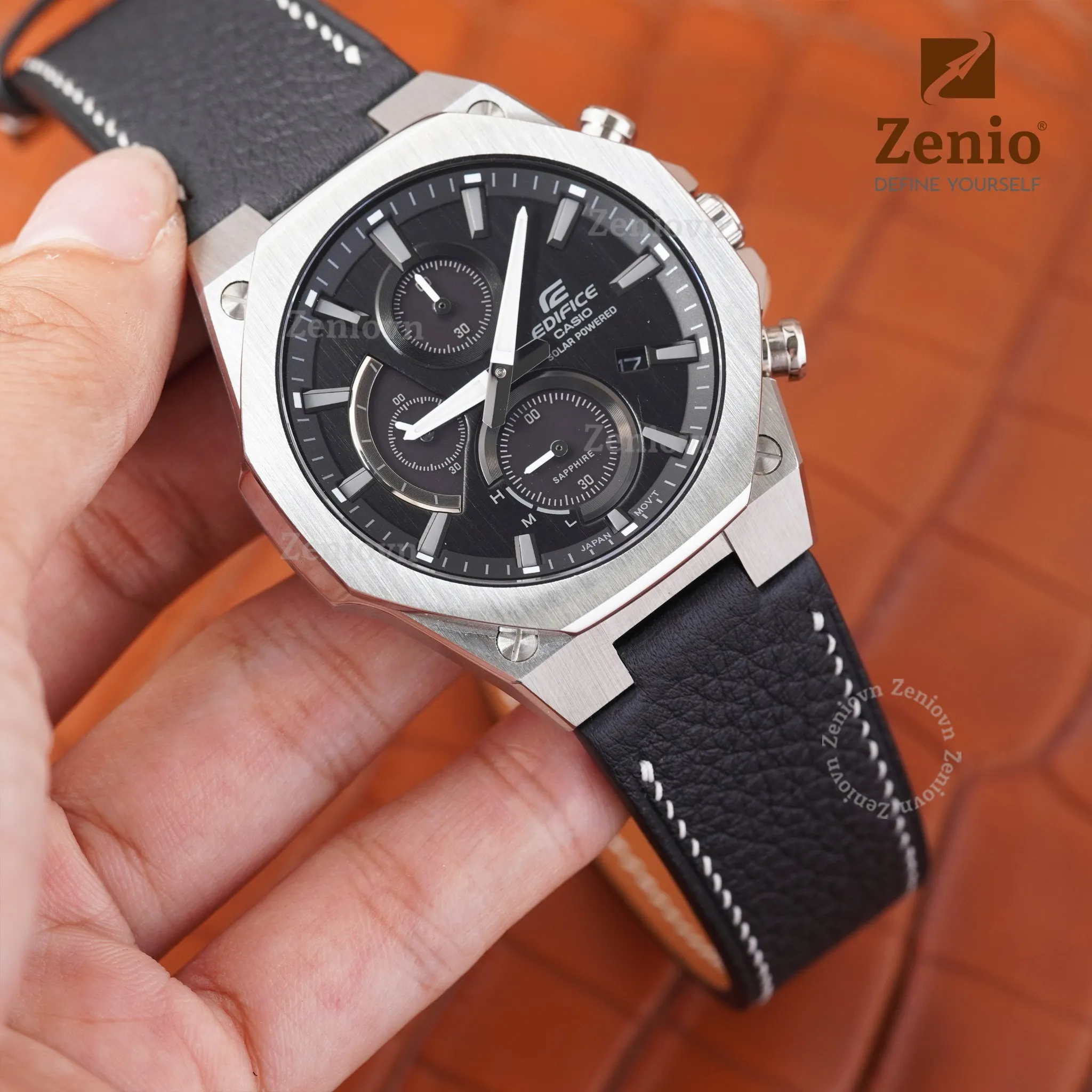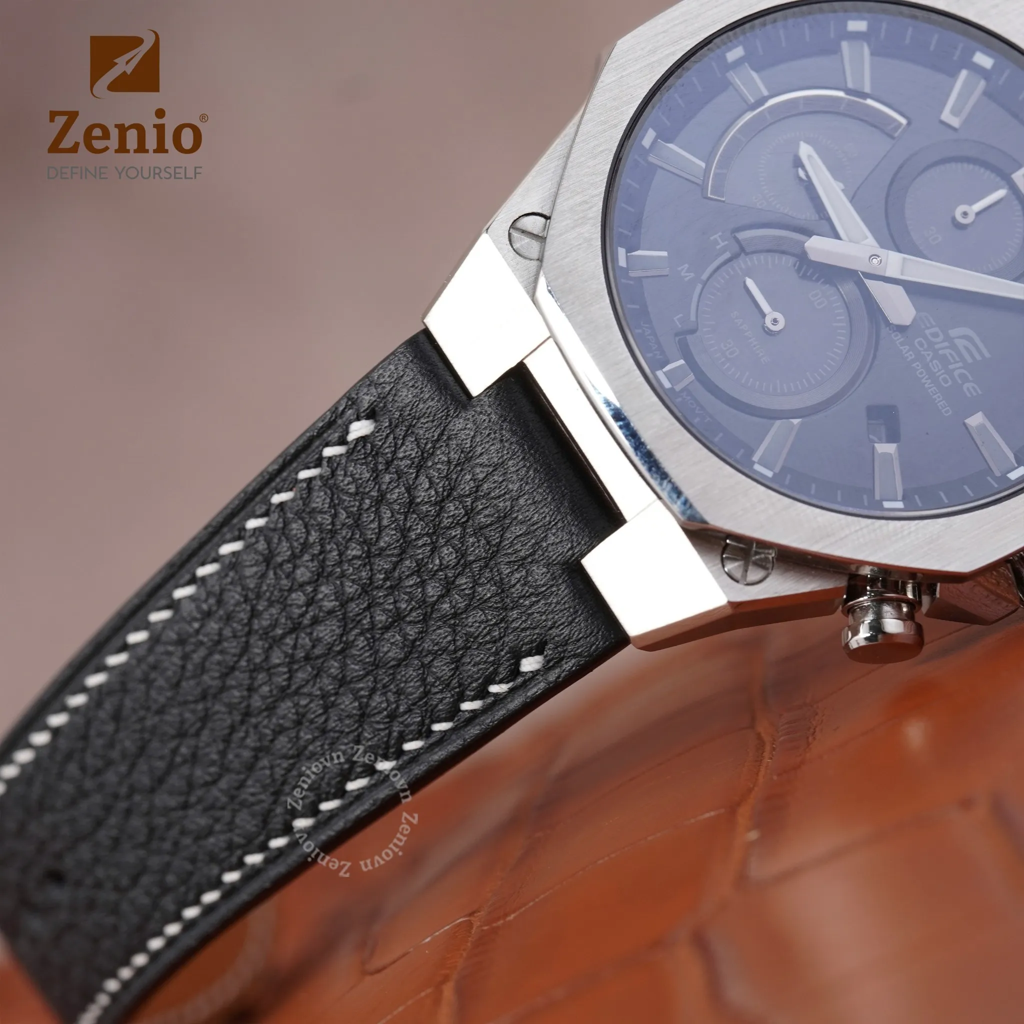 Dây đồng hồ Casio Edifice – Dây Da Togo Đen Chỉ Trắng