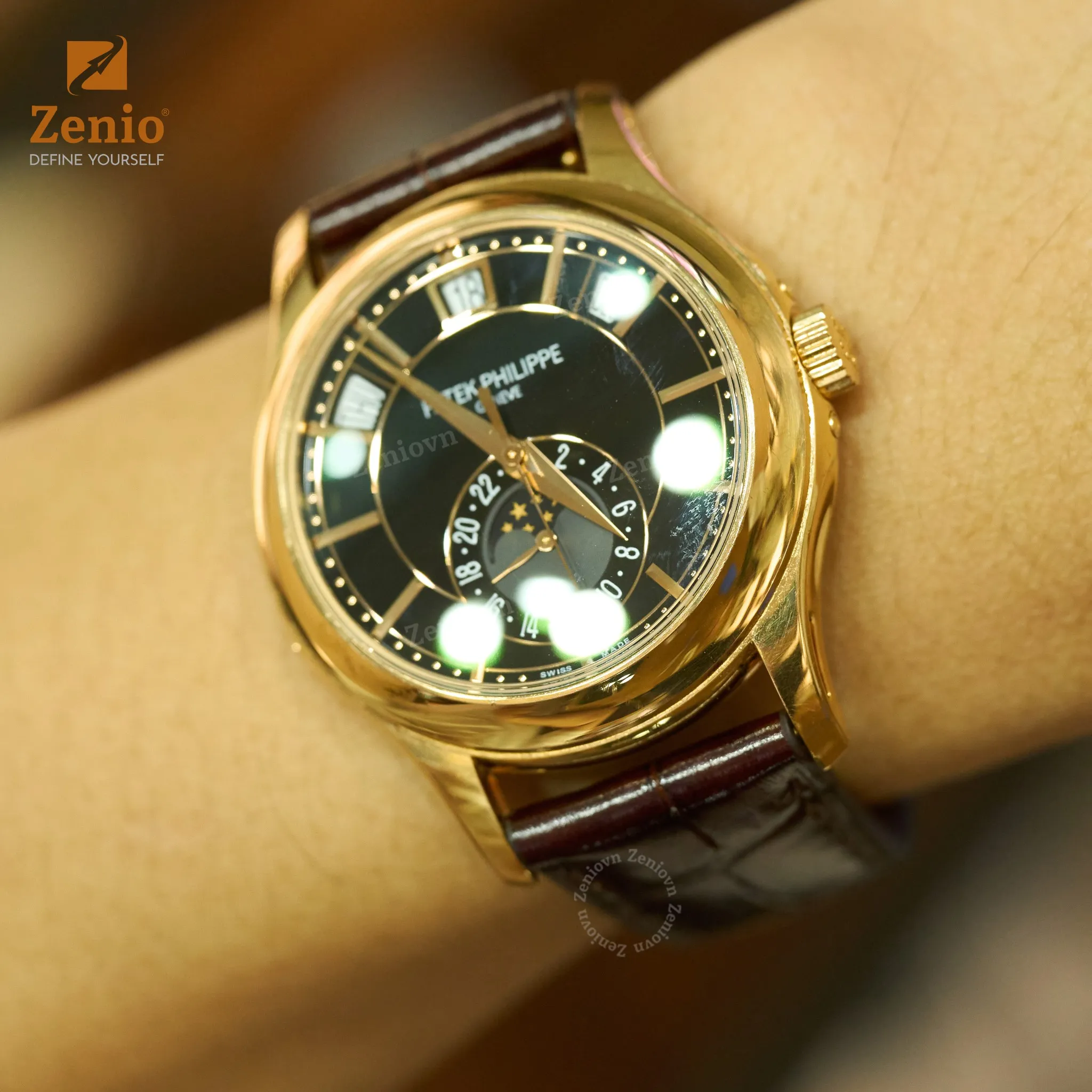 Zenio sử dụng chốt kim loại tương thích theo từng dòng dáng Patek, giúp dây da lắp vừa vặn và giữ được form hài hòa với thiết kế đồng hồ.