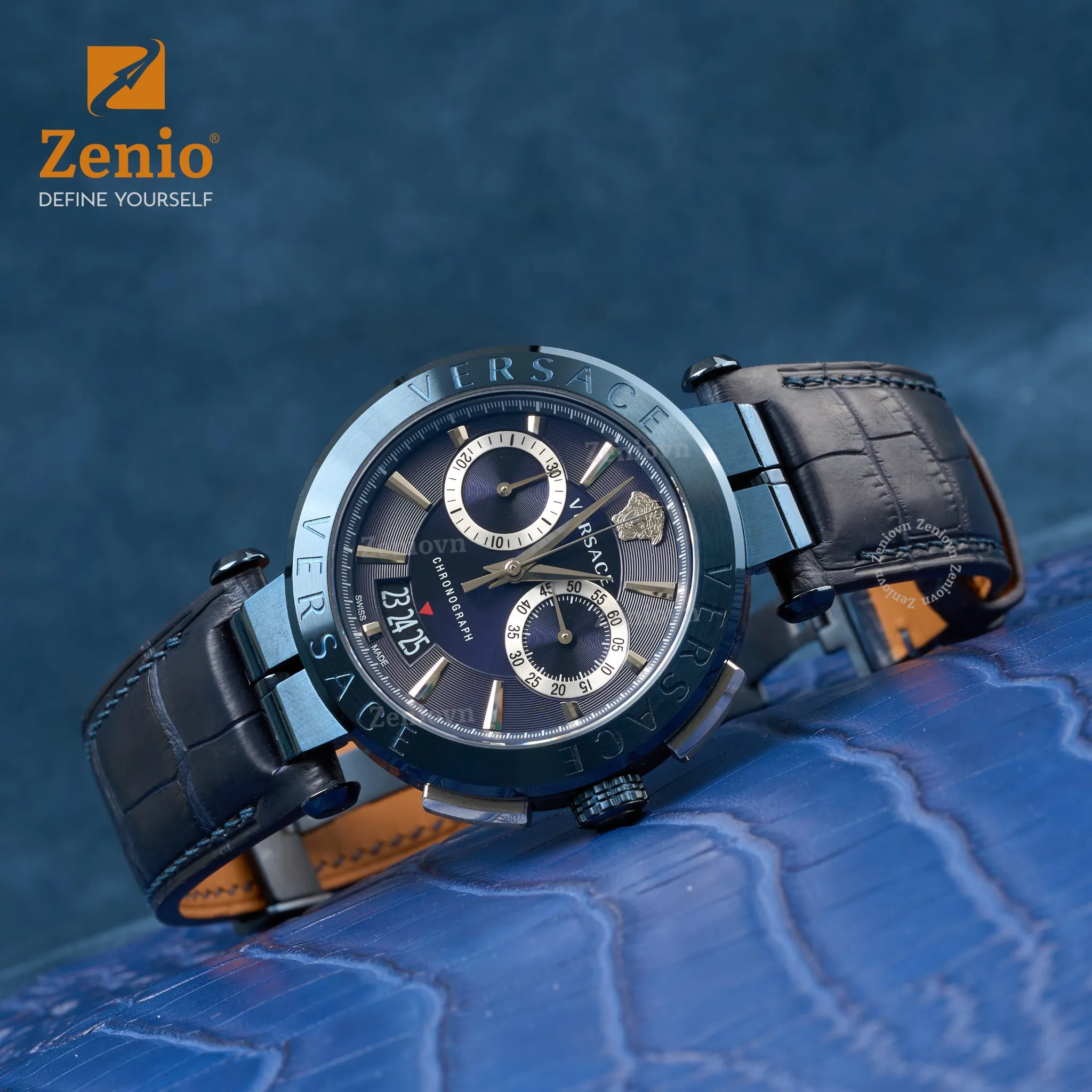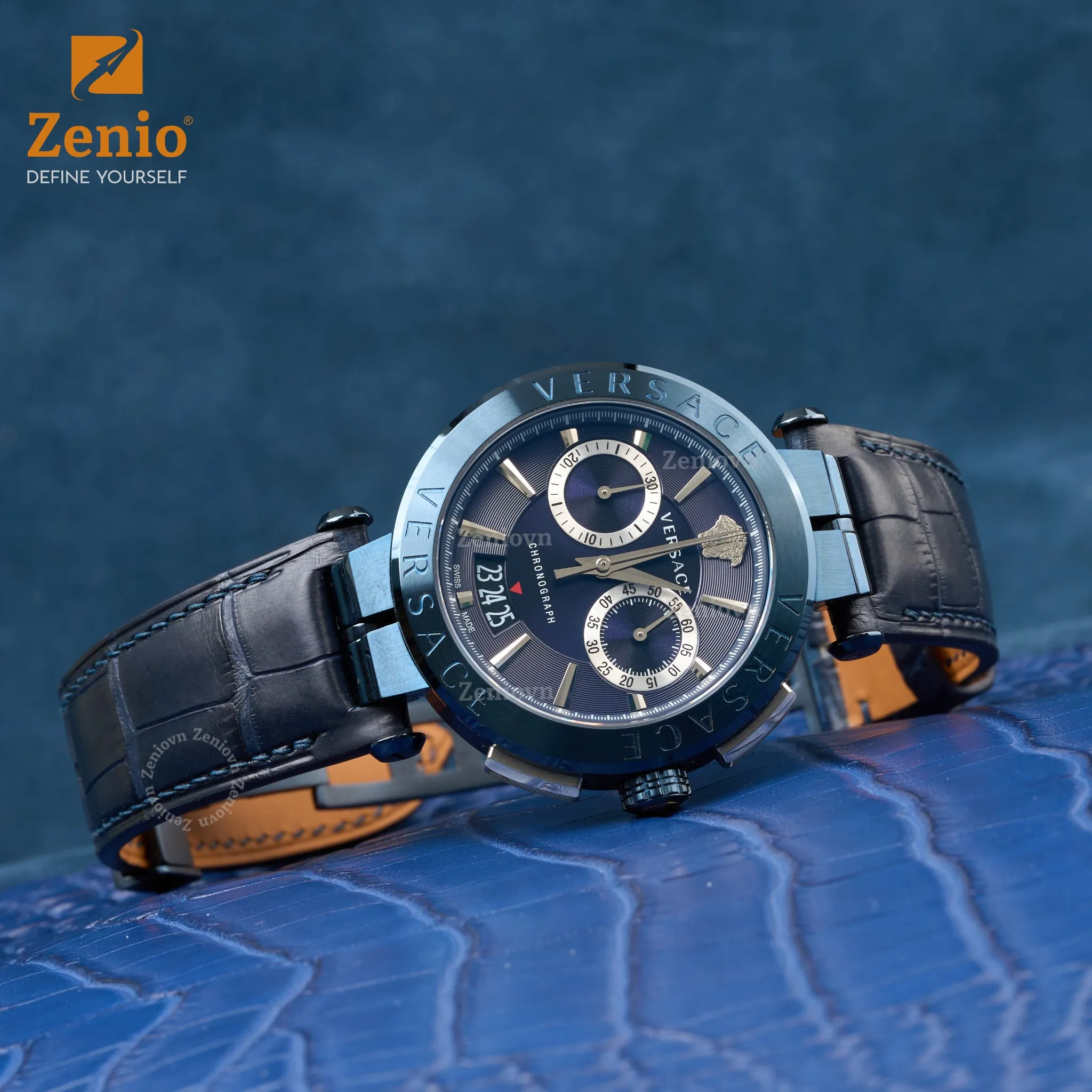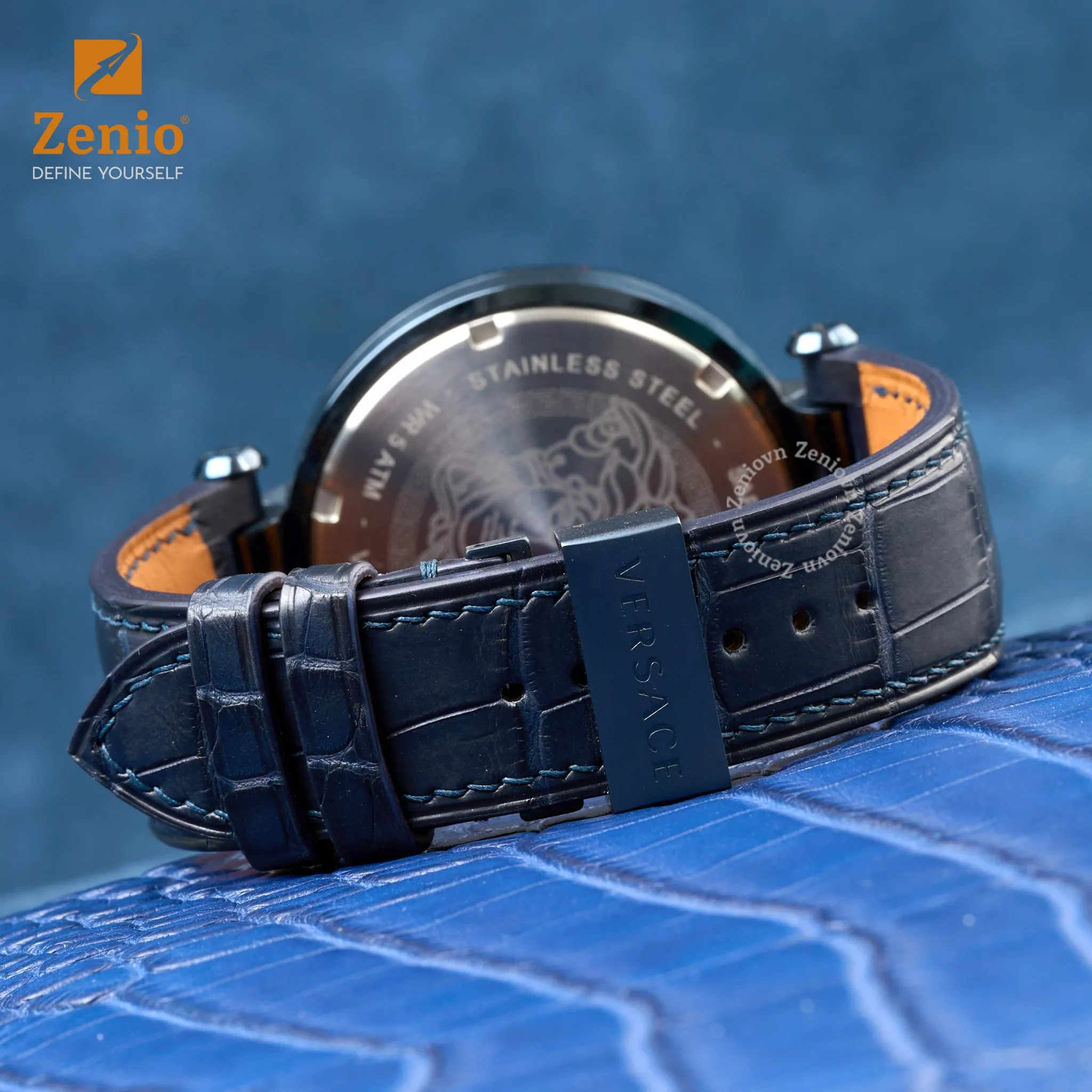 Dây đồng hồ da cá sấu Màu Navy cho đồng hồ Versace Aion Chronograph