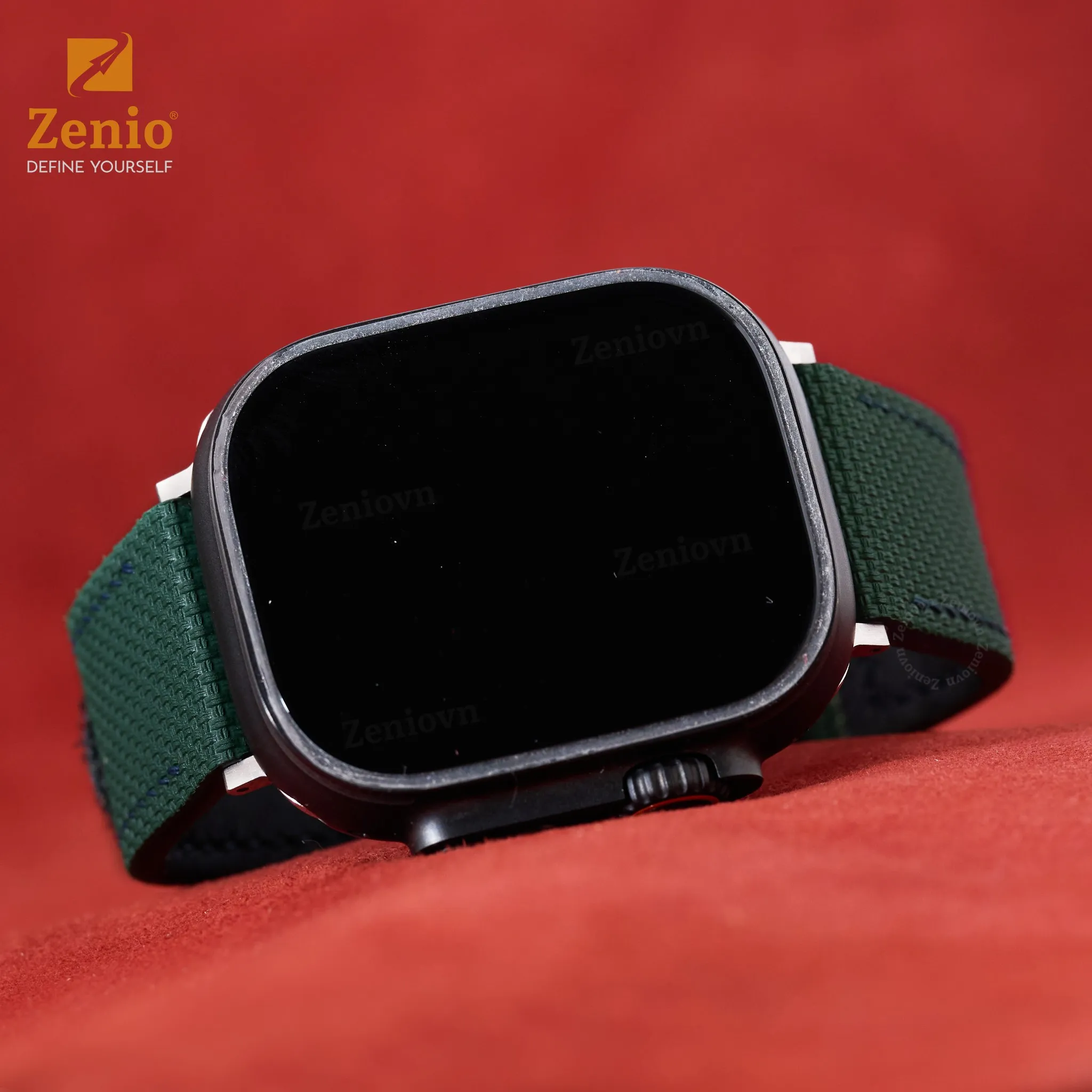 Dây đồng hồ da FKM Sailcloth Velcro Màu xanh rêu cho đồng hồ Apple Watch