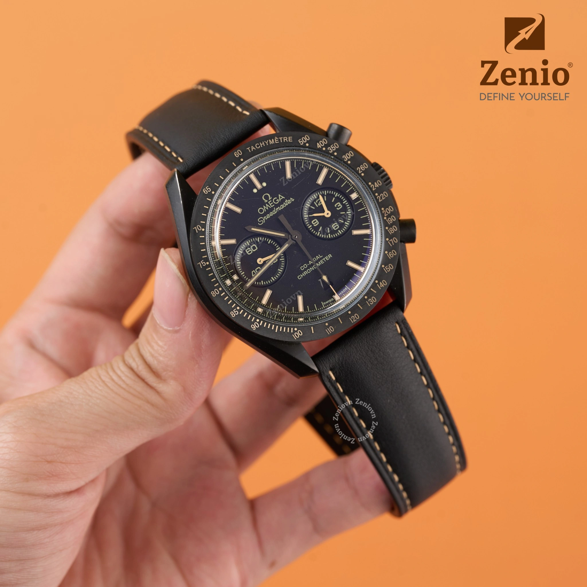Dây đồng hồ Da Nappa Màu đen cho đồng hồ Omega Speedmaster