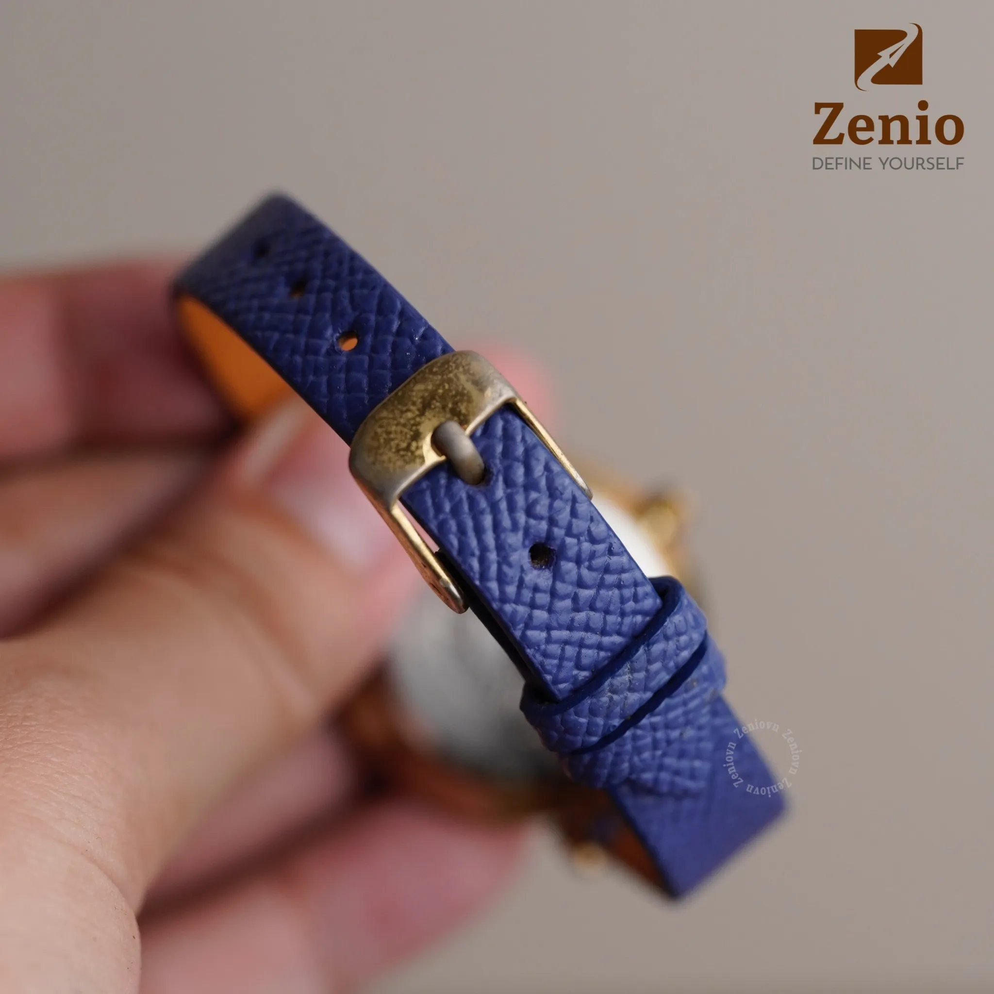 Zenio sử dụng các loại da như da cá sấu Alligator, Crocodile, Da Kỳ Đà, Da Đà Điểu, Da Epsom, Da Togo, Nubuck, Pueblo... Tại Zenio, các nghệ nhân của chúng tôi sử dụng da cao cấp từ nhiều nguồn khác nhau, với hơn 70 màu sắc và chất liệu khác nhau để chế tạo dây đeo đồng hồ thủ công tinh xảo. Chúng tôi cam kết sử dụng nguyên liệu có nguồn gốc minh bạch, có nguồn gốc từ các nhà cung cấp uy tín, đảm bảo khách hàng nhận được những sản phẩm chất lượng cao nhất và độc đáo nhất, trong đó có xưởng thuộc da Heng Long (Thuộc LVMH) danh tiếng, HCP.