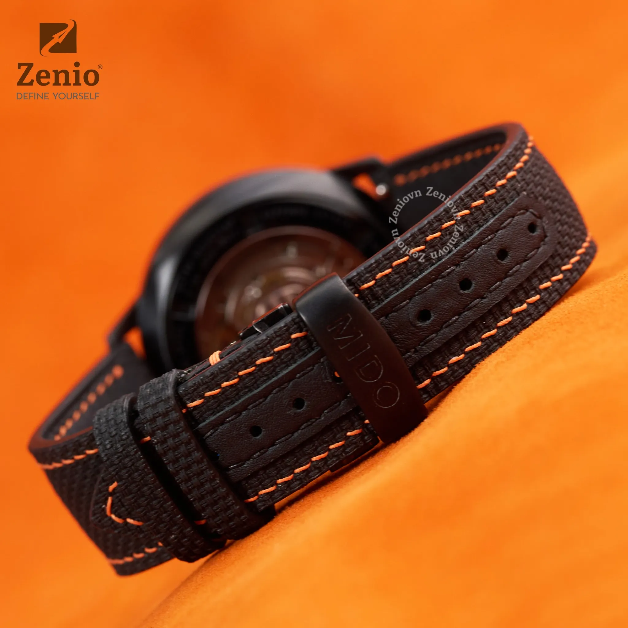 Dây đồng hồ FKM Sailcloth Màu đen chỉ cam cho đồng hồ Mido