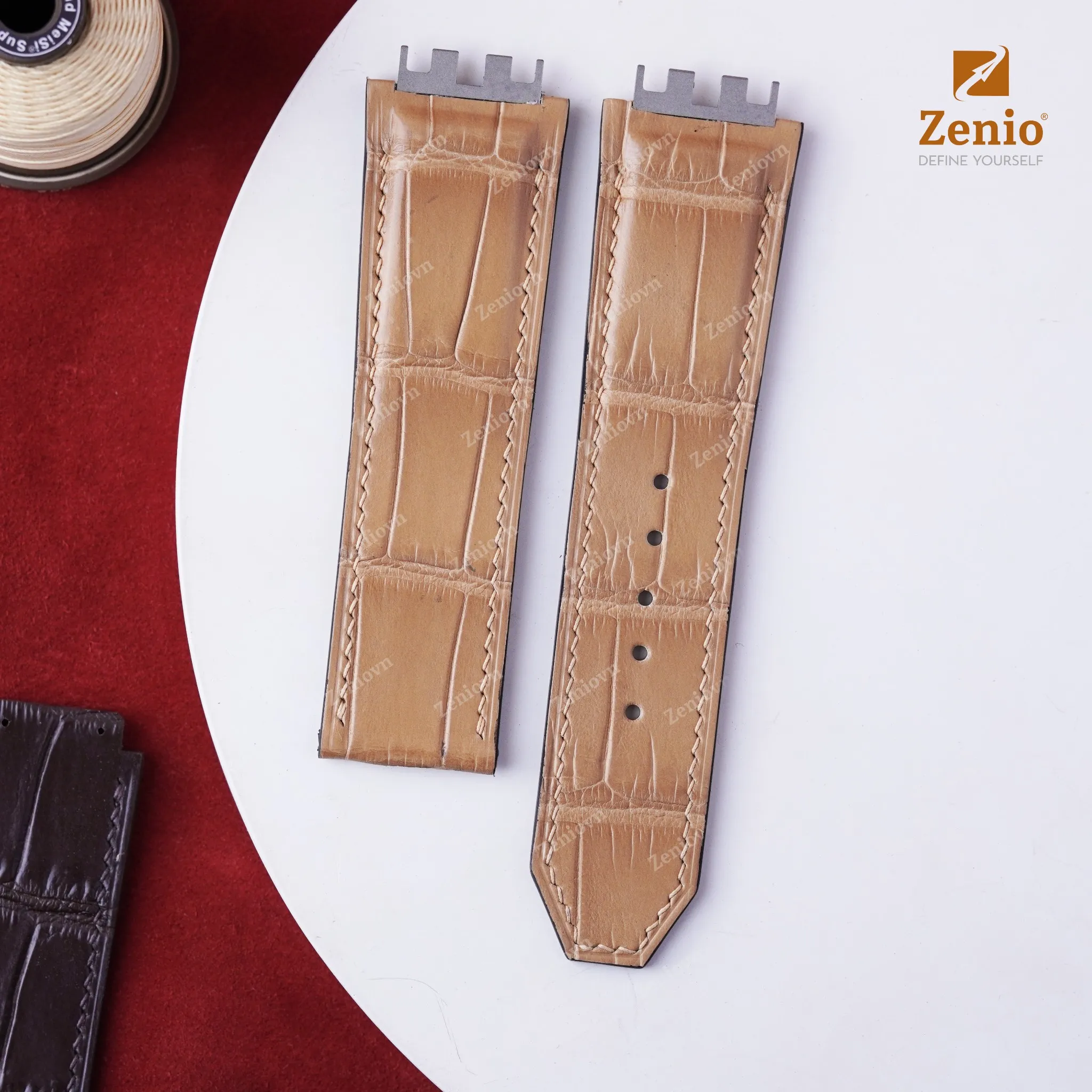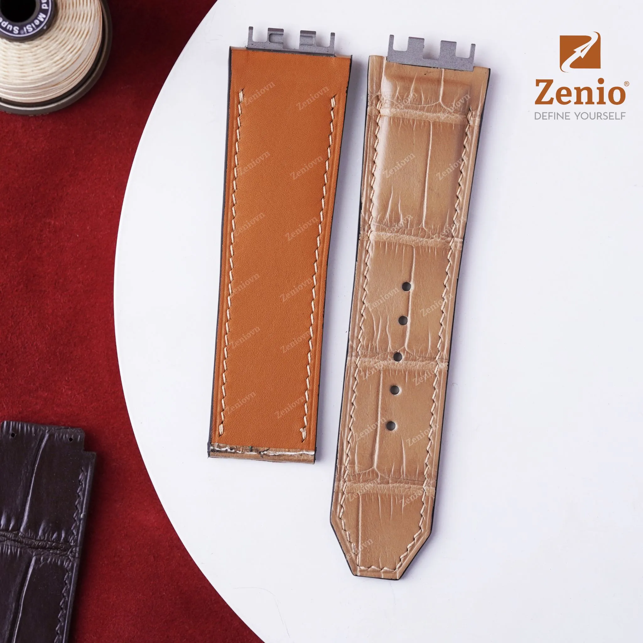 Dây đồng hồ Hublot Spirit Big Bang – Dây Da Cá Sấu Milk Tea