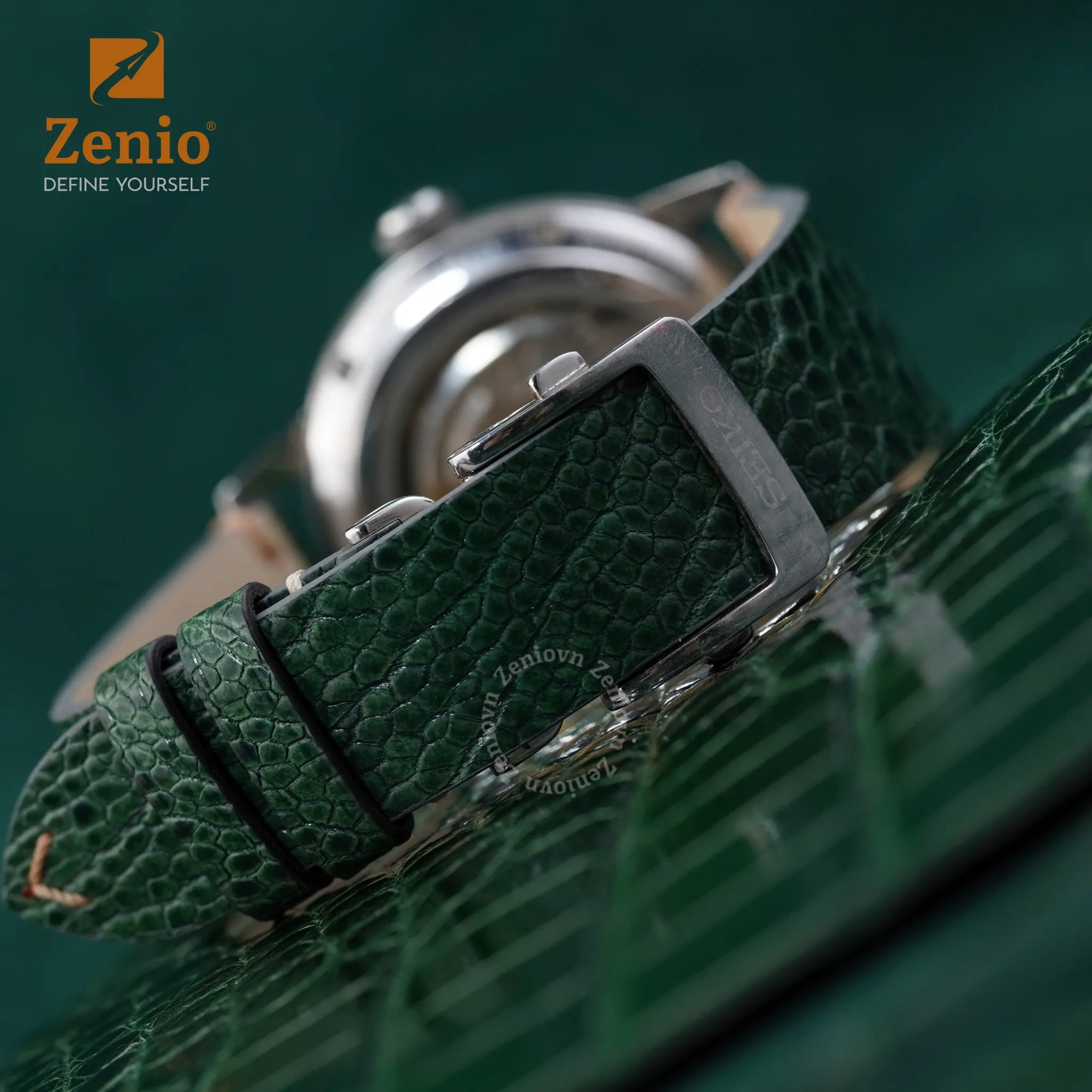 Zenio sử dụng các loại da như da cá sấu Alligator, Crocodile, Da Kỳ Đà, Da Đà Điểu, Da Epsom, Da Togo, Nubuck, Pueblo... Tại Zenio, các nghệ nhân của chúng tôi sử dụng da cao cấp từ nhiều nguồn khác nhau, với hơn 70 màu sắc và chất liệu khác nhau để chế tạo dây đeo đồng hồ thủ công tinh xảo. Chúng tôi cam kết sử dụng nguyên liệu có nguồn gốc minh bạch, có nguồn gốc từ các nhà cung cấp uy tín, đảm bảo khách hàng nhận được những sản phẩm chất lượng cao nhất và độc đáo nhất, trong đó có xưởng thuộc da Heng Long (Thuộc LVMH) danh tiếng, HCP.