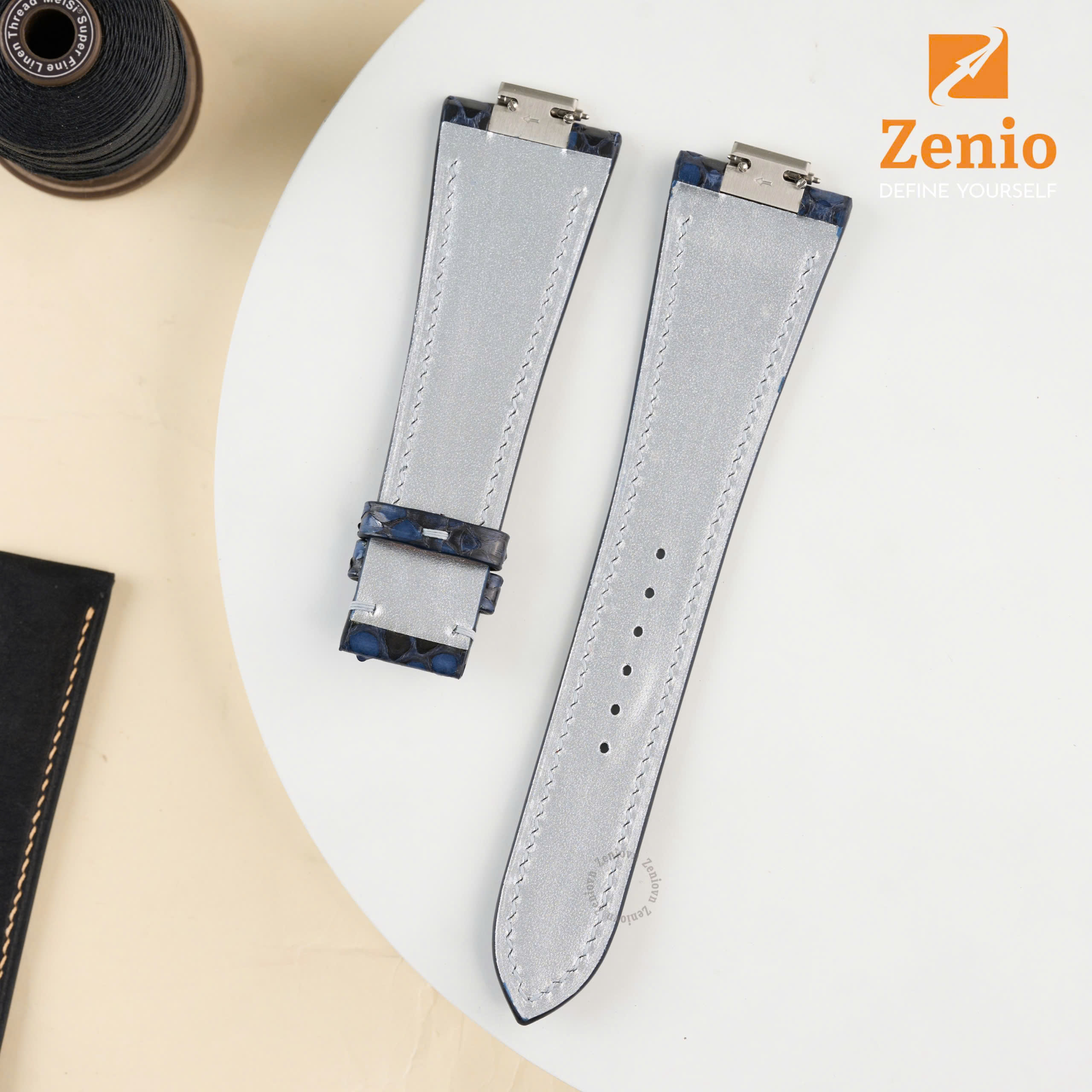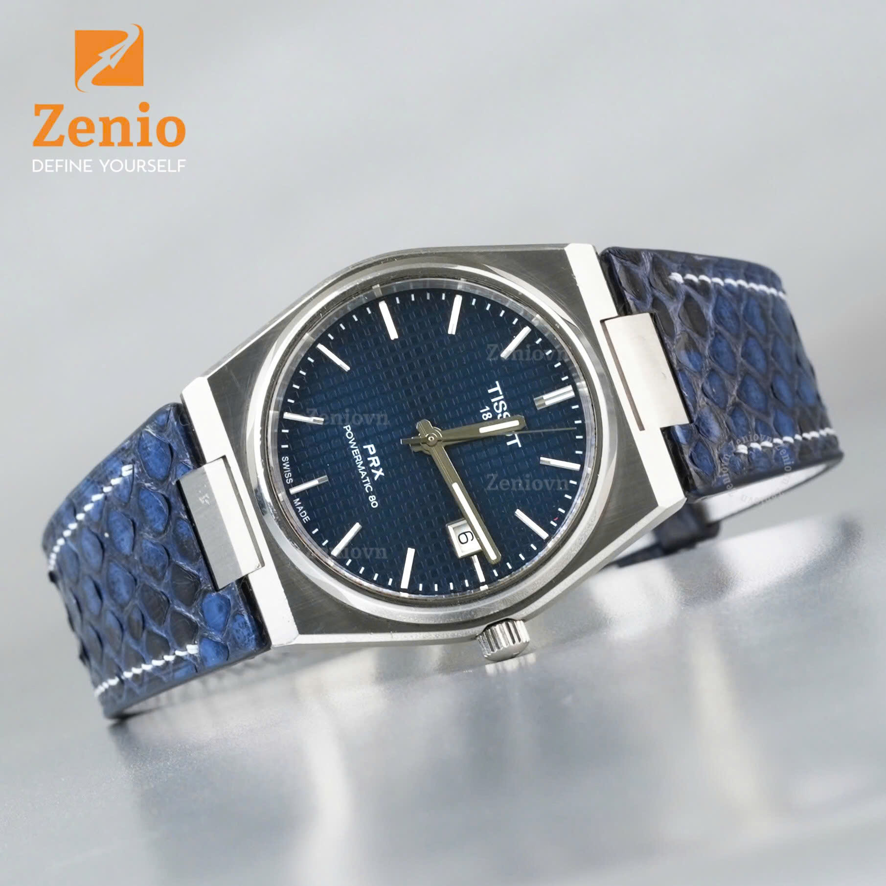 Mặt số xanh dương của PRX rất “nịnh mắt” nhưng cũng đầy thách thức khi phối dây. Dưới đây là những lựa chọn chất liệu da cao cấp tại Zenio:
